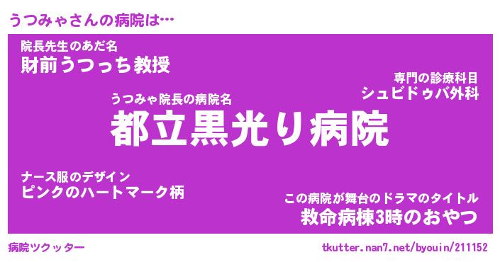 | ファンタジー風あだ名 | 『ウツフェル』『エターナルウツミャー』 |