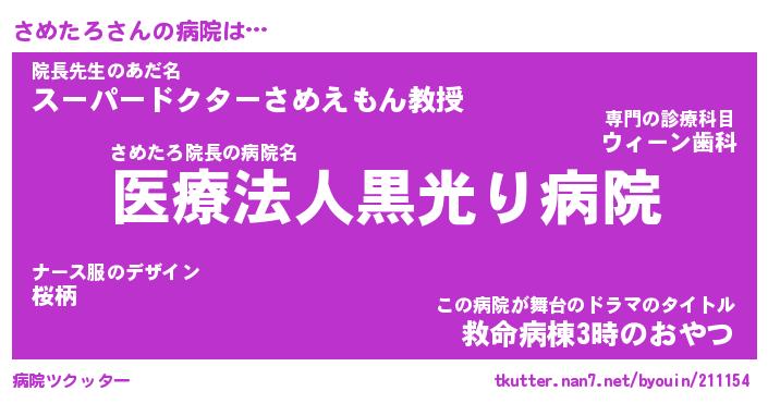 | 意味不明あだ名 | 『ペロリンさめたろ』『永久保存さめたろ』 |