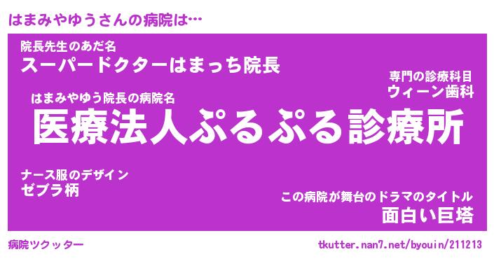 | 肩書あだ名 | 『はまみやゆう店長』『はまみやゆう担任』 |