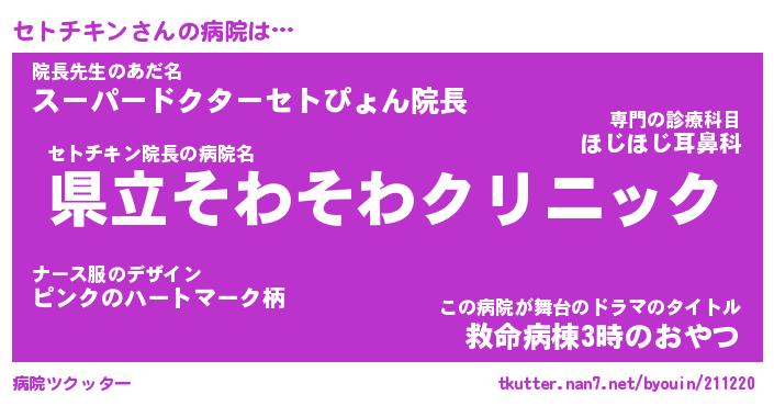 | ファンタジー風あだ名 | 『セトフェル』『エターナルセトチキンー』 |
