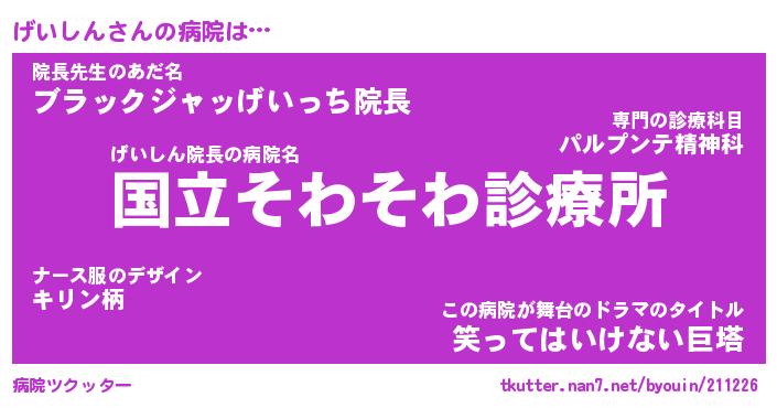 | 2回繰り返すあだ名 | 『げいげい』『げげいい』『くたくた』 |