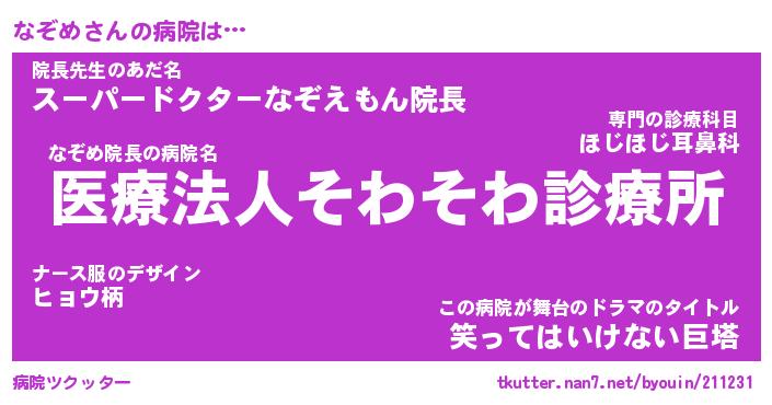 | ファンタジー風あだ名 | 『ナゾフェル』『エターナルナゾメー』 |