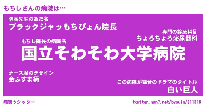| 男性向けラノベタイトル風あだ名 | 『もちしの憂鬱』 |