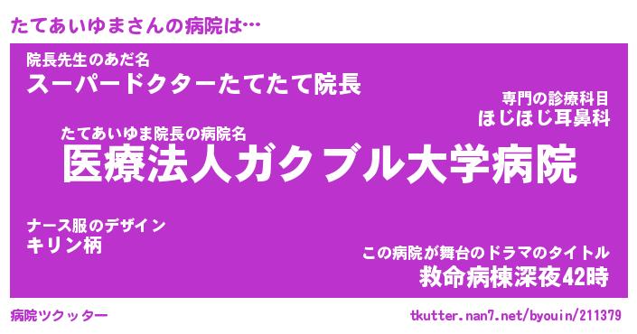 | 肩書あだ名 | 『たてあいゆま店長』『たてあいゆま校長』 |