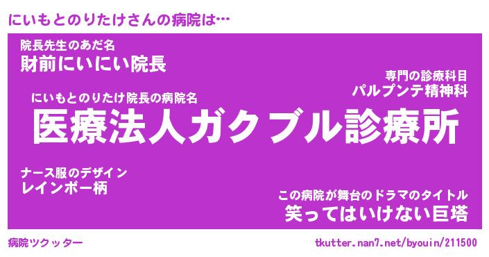 | ピコ太郎風あだ名 | 『ニコ史郎』『ピニ次郎』『ニイ六郎』 |