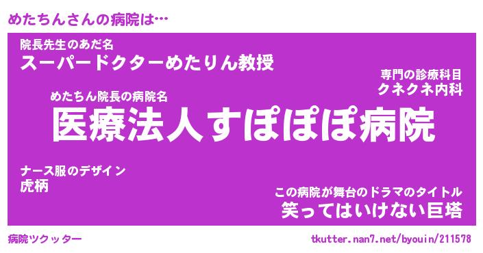 | ツイッター | めたちんさんのツイッターID『namakemono_kun』 |