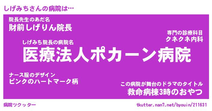 | 2回繰り返すあだ名 | 『しげしげ』『ししげげ』『おたおた』 |