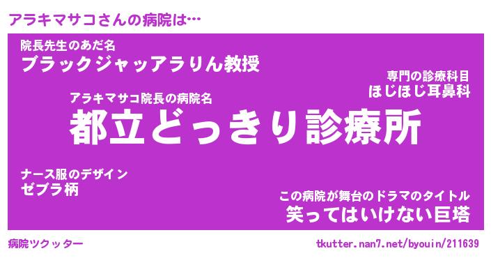 | 欧米人風あだ名 | 『マイケルアラキマサコ』 |