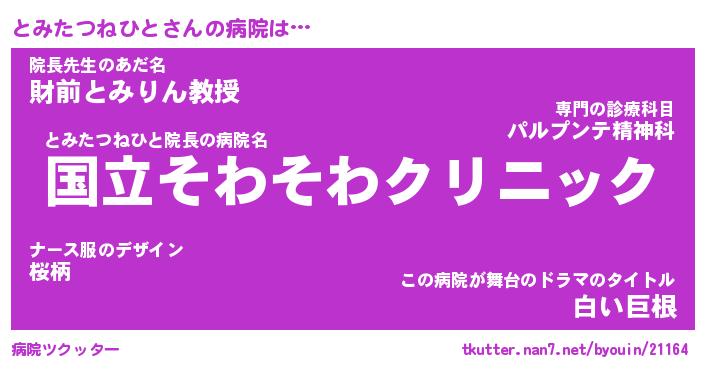 | 胡散臭い通販商品みたいなあだ名 | 『必ず成功するブレスレット…その名も「とみたつねひと」』 |