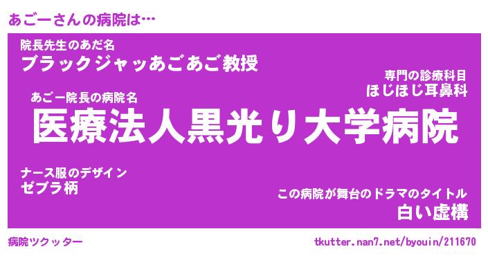 | ピコ太郎風あだ名 | 『アコ三郎』『ピア二郎』『アゴ太郎』 |