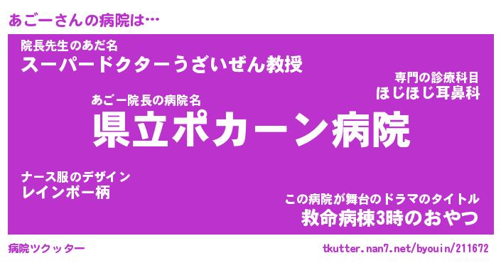 | ピコ太郎風あだ名 | 『アコ史郎』『ピア三郎』『アゴ二郎』 |