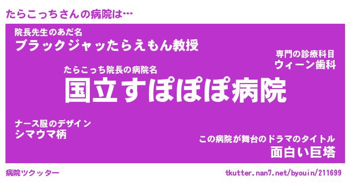 | ヒーロー風カッコイイあだ名 | 『スーパータラコッチ』『魔戒騎士タラ』 |