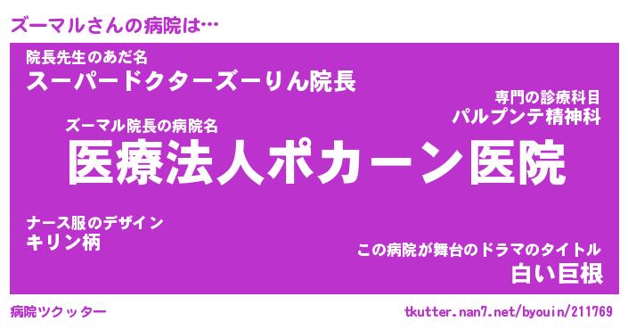 | 意味不明あだ名 | 『ペロリンズーマル』『永久保存ズーマル』 |