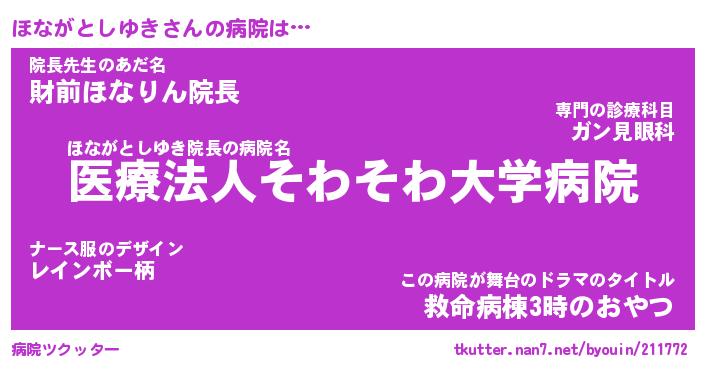 | ツイッター | ほながとしゆきさんのツイッターID『namakemono_star』 |