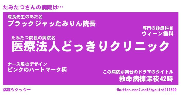 | 意味不明あだ名 | 『ペロリンたみたつ』『永久保存たみたつ』 |