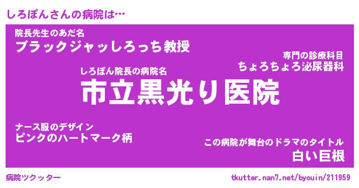 | 意味不明あだ名 | 『ペロリンしろぽん』『永久保存しろぽん』 |