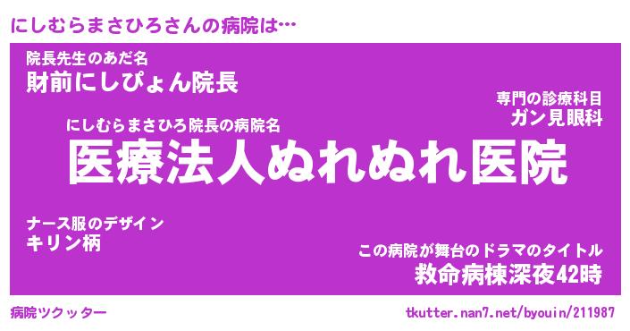 | 肩書あだ名 | 『にしむらまさひろ社長令嬢』 |