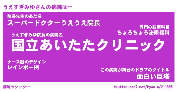 | 恥ずかしいあだ名 | 『プリティーうえすぎみゆ』『うえっちょ』 |