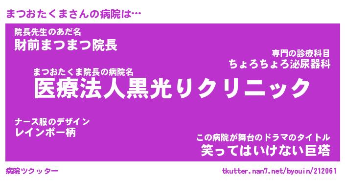 | 欧米人風あだ名 | 『マイケルまつおたくま』 |