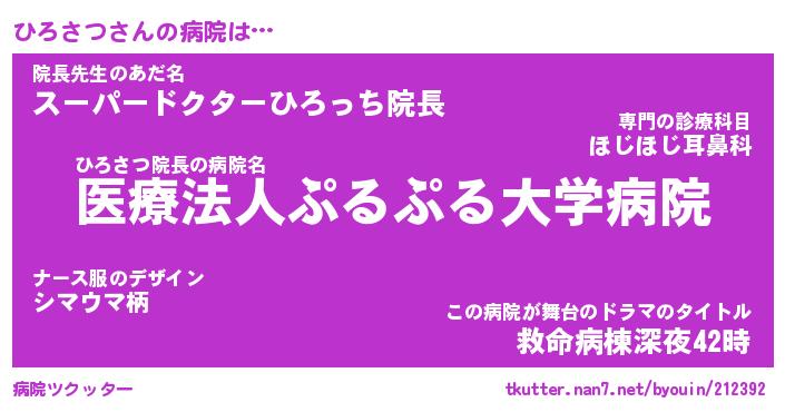 | 意味不明あだ名 | 『ペロリンひろさつ』『永久保存ひろさつ』 |