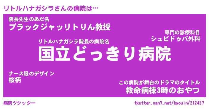 | ヒーロー風カッコイイあだ名 | 『スーパーリトルハナガシラ』 |