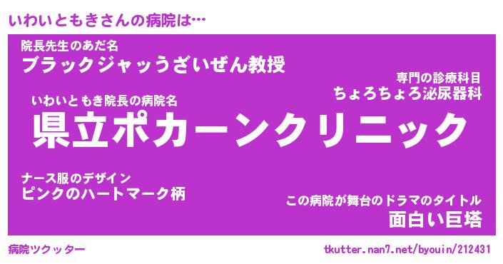 | 肩書あだ名 | 『いわいともき店長』『いわいともき班長』 |