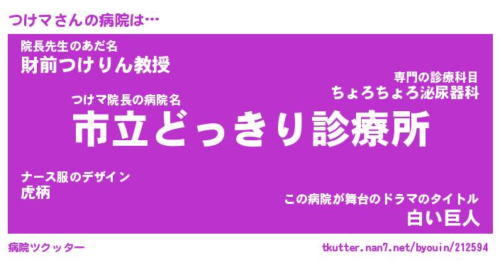 | ポケモン風あだ名 | 『ツケチュウ』『ツケマダネ』 |