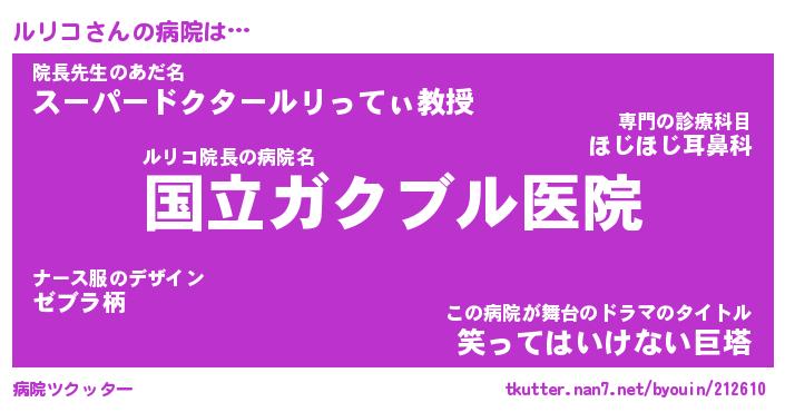 | ヘコむあだ名 | 『ルリにゅー』『つくし』 |