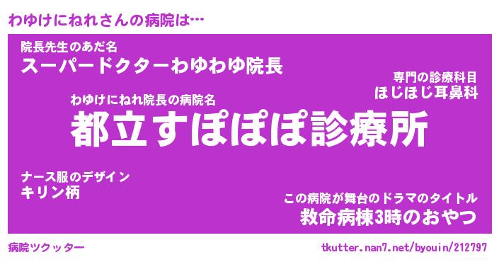 | 2回繰り返すあだ名 | 『わゆわゆ』『わわゆゆ』『ぬるぬる』 |