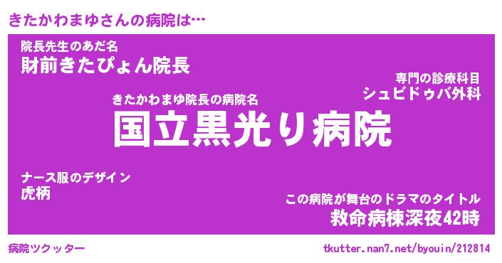 | 恥ずかしいあだ名 | 『プリティーきたかわまゆ』『きたっちょ』 |