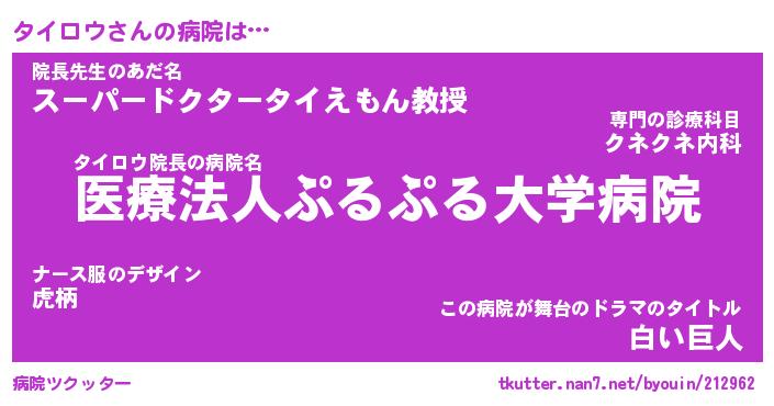 | 意味不明あだ名 | 『ペロリンタイロウ』『永久保存タイロウ』 |