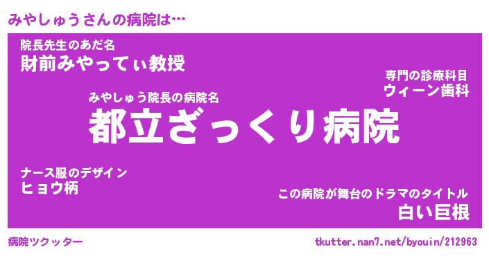 | ヒーロー風カッコイイあだ名 | 『スーパーミヤシュウ』『天弓騎士ミヤ』 |