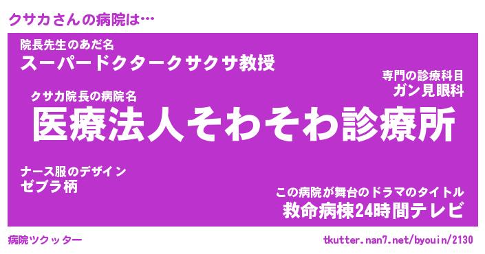 | 2回繰り返すあだ名 | 『クサクサ』『ククササ』『おやおや』 |