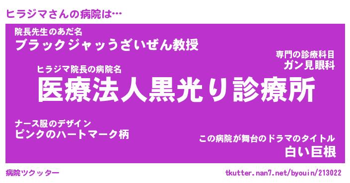 | 胡散臭い通販商品みたいなあだ名 | 『億万長者になれるブレスレット…その名も「ヒラジマ」』 |