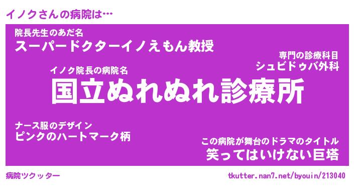 | ピコ太郎風あだ名 | 『イコ四郎』『ピイ太郎』『イノ一郎』 |