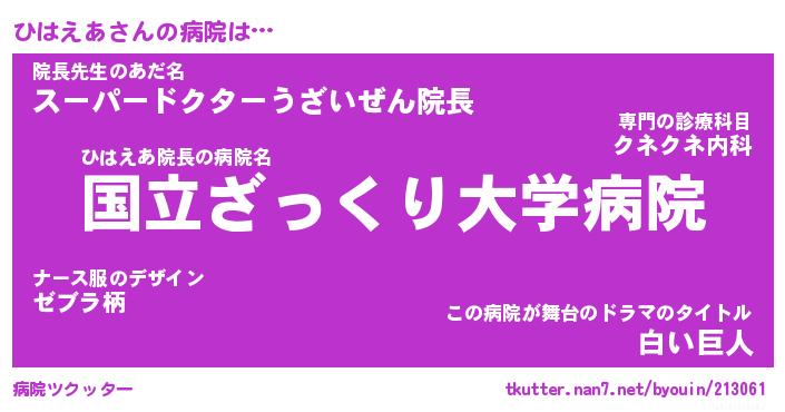 | 自動車の名前っぽいあだ名 | 『プリヒハ』『ヒクア』『ヒント』 |