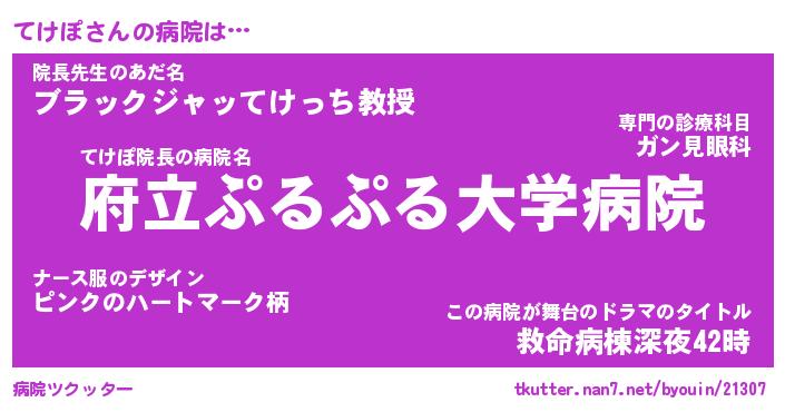 | 男性向けラノベタイトル風あだ名 | 『てけぽの憂鬱』 |