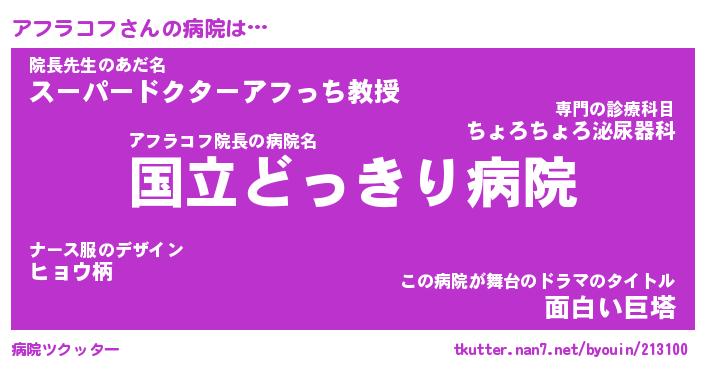 | 肩書あだ名 | 『アフラコフ御曹司』『アフラコフ塾長』 |