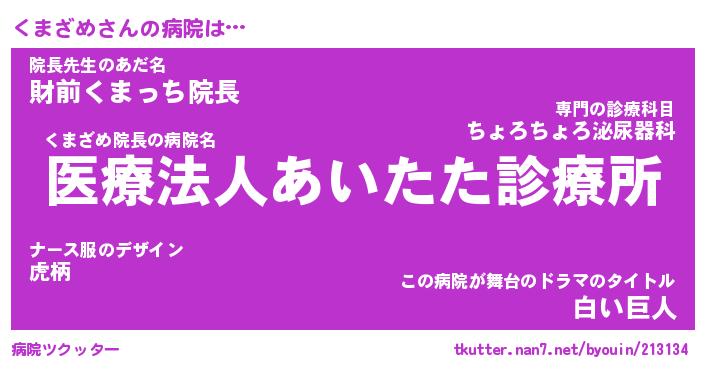 | 2回繰り返すあだ名 | 『くまくま』『くくまま』『ねばねば』 |