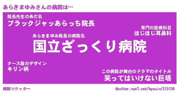 | 女子向けラノベタイトル風あだ名 | 『(仮)あらきまゆみのやんごとなき事情』 |