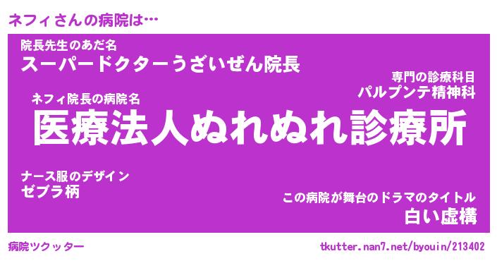 | ヘコむあだ名 | 『ネフもー』『牛乳』『ネフ太郎』 |