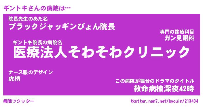 | 意味不明あだ名 | 『ペロリンギントキ』『永久保存ギントキ』 |