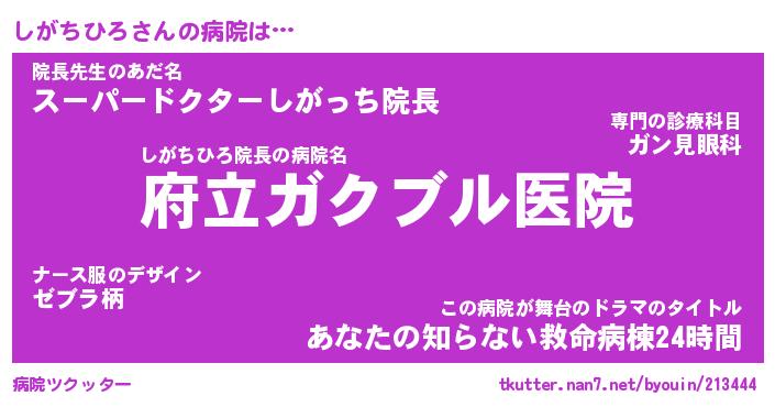 | 肩書あだ名 | 『しがちひろ店長』『しがちひろ総理大臣』 |