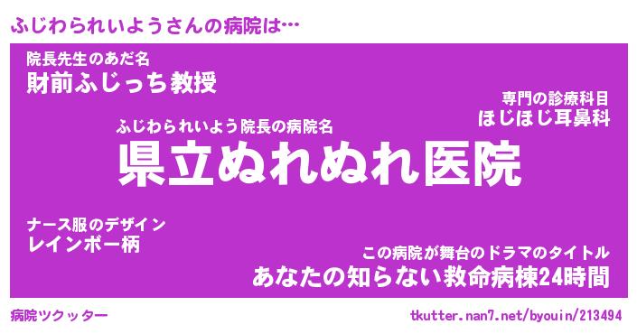 | 意味不明あだ名 | 『ペロリンふじわられいよう』 |