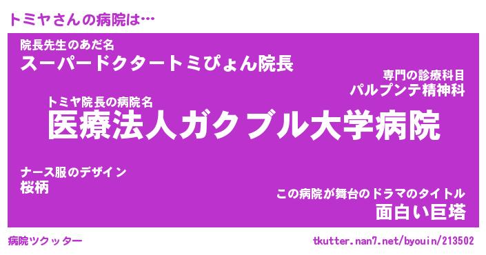 | ヒーロー風カッコイイあだ名 | 『スーパートミヤ』『ウルトラトミヤマン』 |