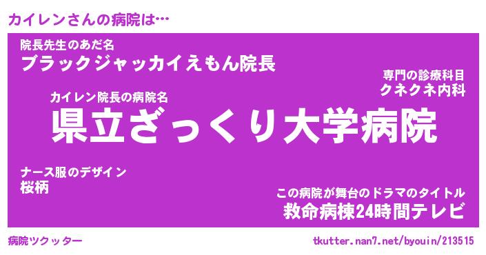 | 肩書あだ名 | 『カイレン御曹司』『カイレン大統領』 |