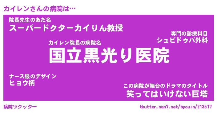 | 意味不明あだ名 | 『ペロリンカイレン』『永久保存カイレン』 |