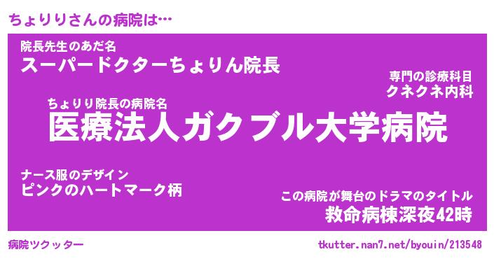 | 意味不明あだ名 | 『ペロリンちょりり』『永久保存ちょりり』 |