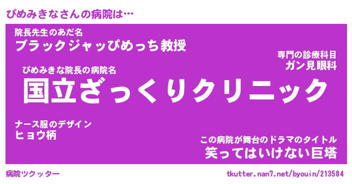 | 伝説のあだ名 | 『伝説のスナイパーぴめみきな』 |
