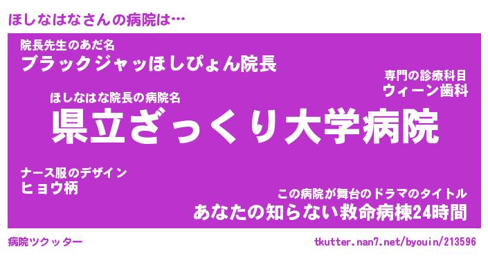 | ファンタジー風あだ名 | 『ホシフェル』『エターナルホシナハナー』 |
